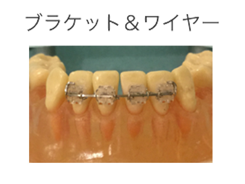 着脱式では、各種プレート装置やマウスピース、固定式では、ブラケットとワイヤーの装置を使用します。
